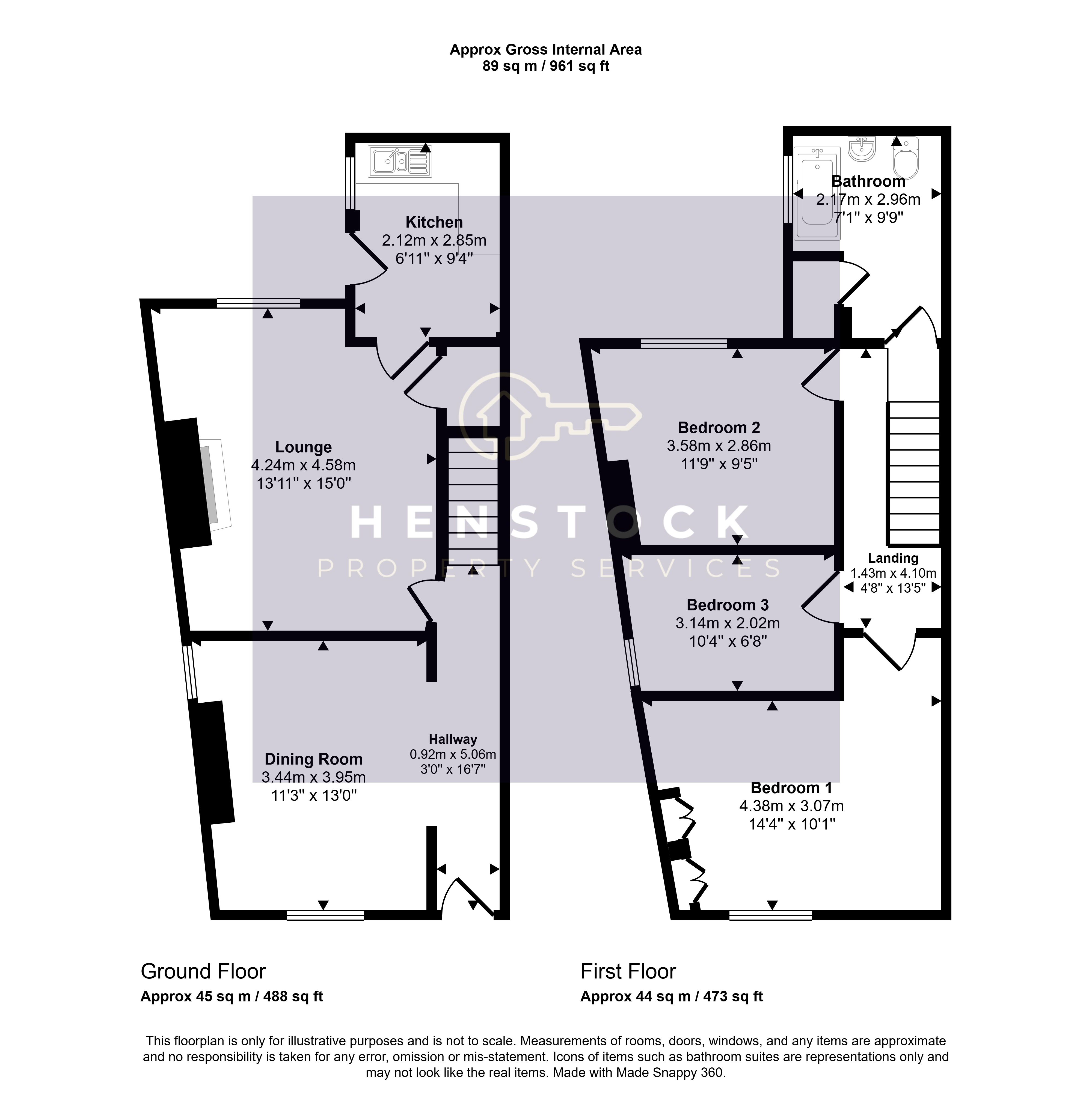 2.17m x 2.96m (7' 1" x 9' 9") views to side, modern white suite comprising; bath with over bath electric wall mounted shower, sink, close coupled w.c, part tiled walls, tiled floor, built in storage cupboard, single radiator.