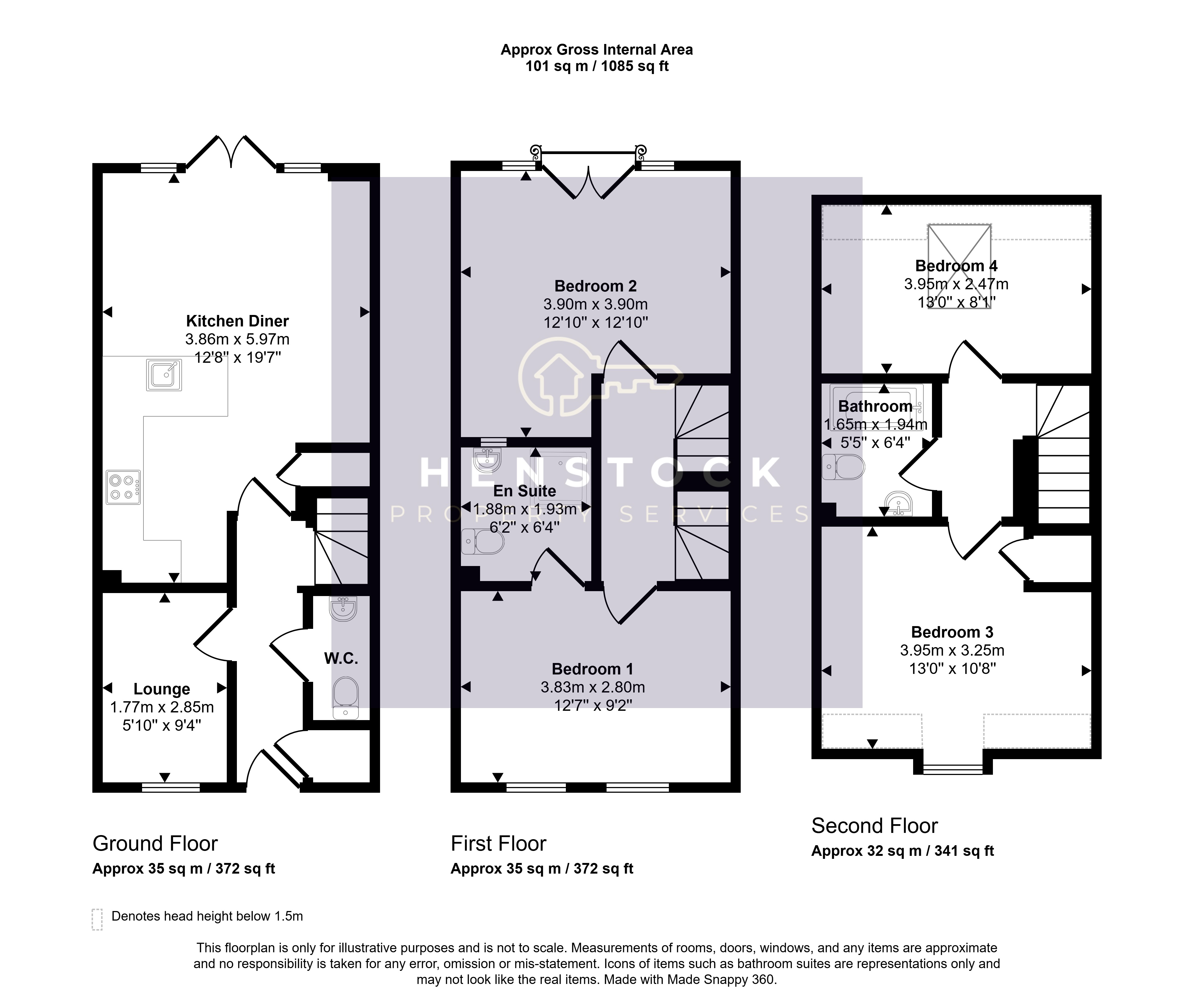 1.88m x 1.93m (6' 2" x 6' 4") Accessed from Bedroom 1